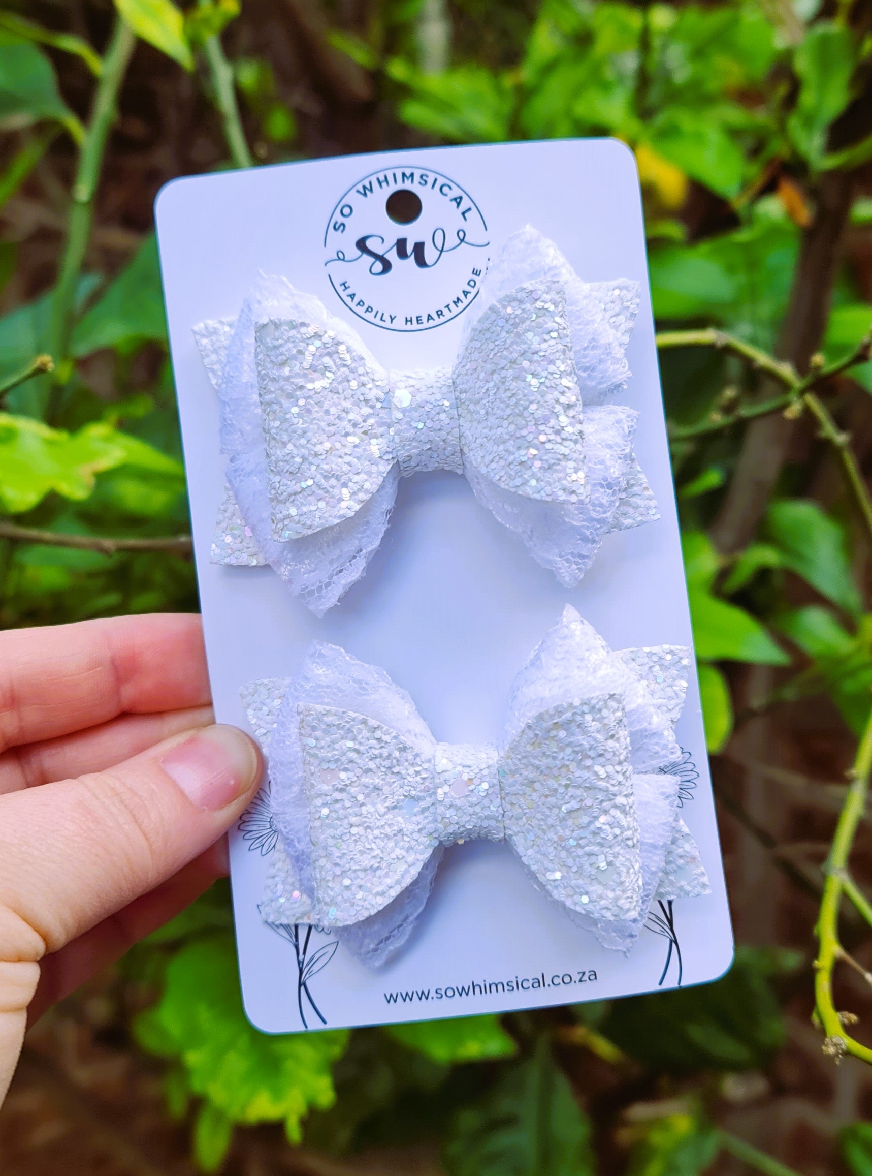 Each bow is carefully handcrafted by me in my studio in Centurion, Gauteng. I take great pride in creating each and every bow to perfection, although because these are handmade items, they may differ slightly from one another. Each bow also has an alligator clip attached to the back. Please be vigilant of hair accessories with babies and children and never leave them in while sleeping.