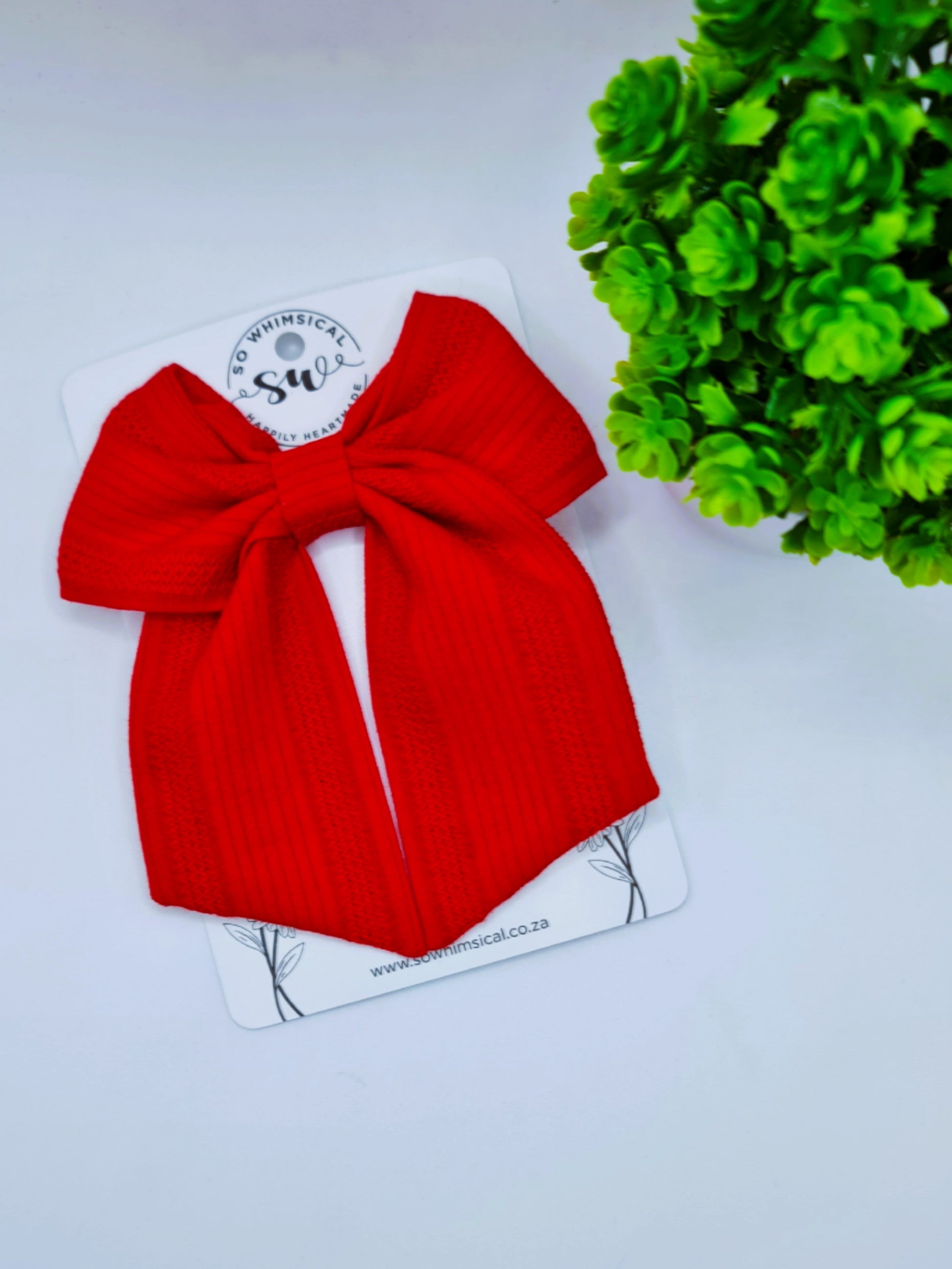 Each bow is carefully handcrafted by me in my studio in Centurion, Gauteng. I take great pride in creating each and every bow to perfection, although because these are handmade items, they may differ slightly from one another. Each bow also has an alligator clip attached to the back. Please be vigilant of hair accessories with babies and children and never leave them in while sleeping.